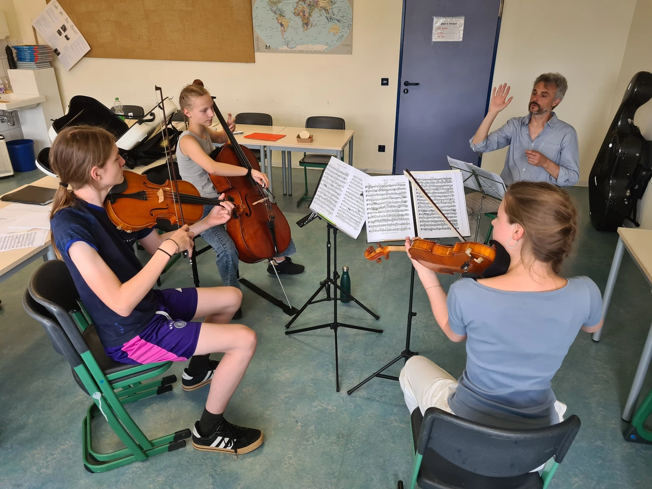 Die Förderensembles des Kammermusikzentrums NRW hatten Glück mit dem Wetter, denn die Hitzewelle war gerade noch rechtzeitig zur Kursfahrt nach Nottuln vom 04. Juli bis zum 06. Juli abgeklungen. Mit guter Laune und fünf motivierten Ensembles starteten die Proben im Münsterland. Für die Freizeitaktivitäten gab es einen Fußballplatz und eine Tischtennisplatte, die eine gute Abwechslung zur harten Arbeit boten. Am Sonntag durfte natürlich das Abschlusskonzert nicht fehlen.